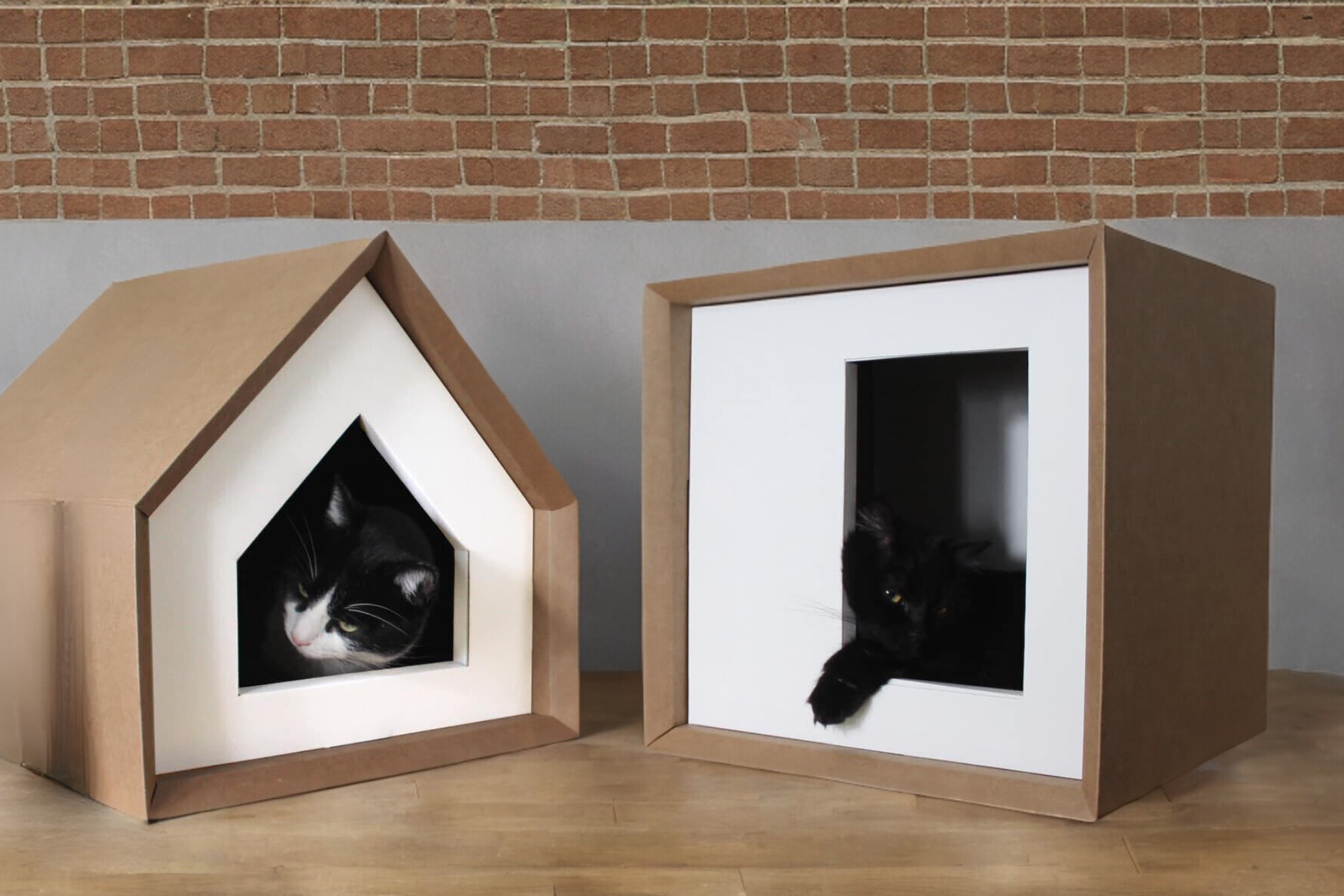 Immergiti nel mondo del lusso felino con le cucce per gatto di CLS per "Archimiao", una creazione di alto design che coniuga stile e praticità. Questa cuccia è realizzata con un raffinato cartone avana e bianco, creando un contrasto sofisticato che si adatta perfettamente a qualsiasi arredamento.